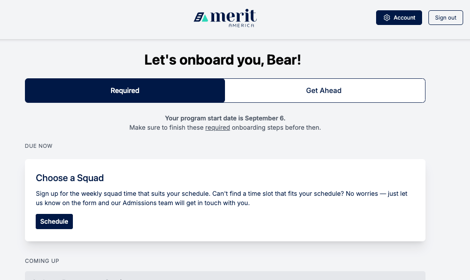 Log into My Merit America at https://my.meritamerica.org/learner_accounts/sign_in