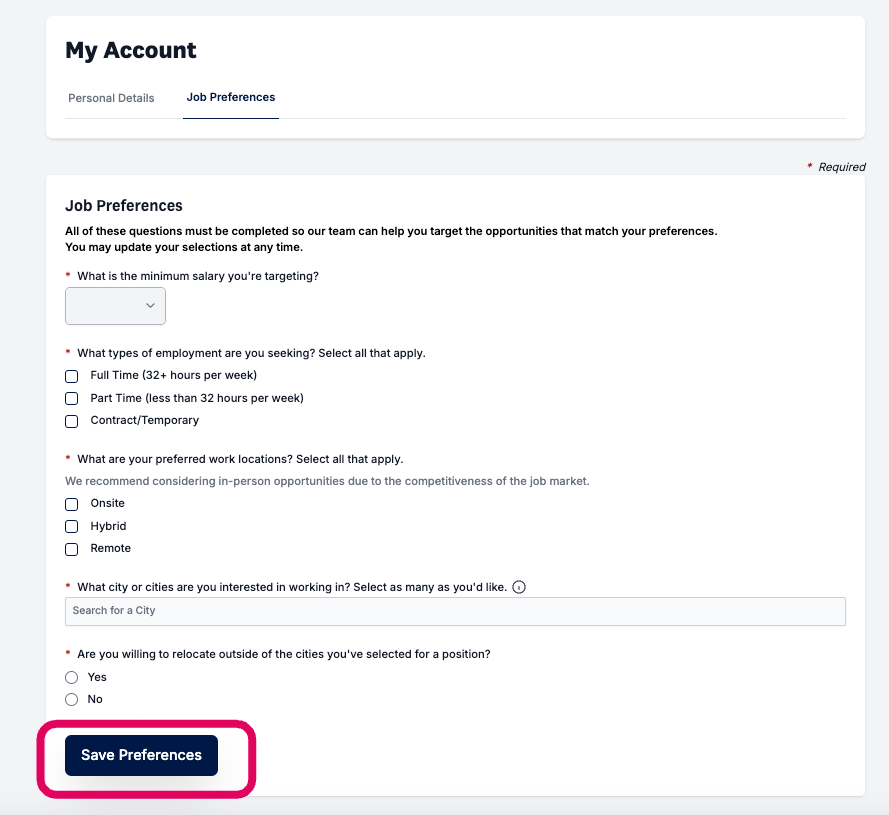 How to update your job preferences